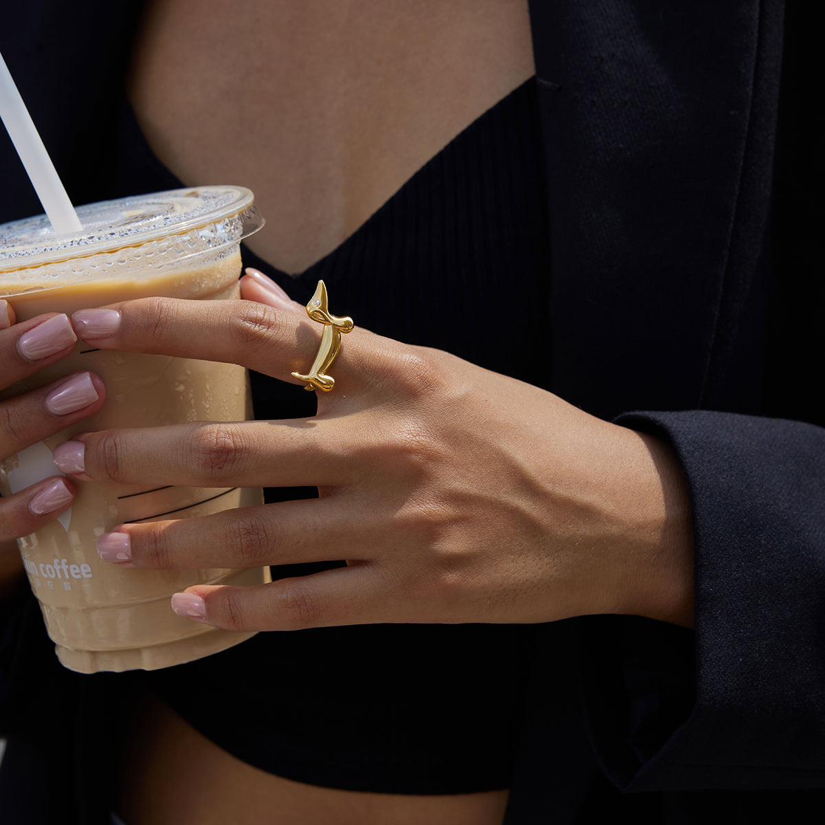 This waterproof, hypoallergenic ring features a playful dachshund silhouette in polished gold‑tone stainless steel, complete with a tiny crystal eye for a subtle sparkle. The dog motif measures about 1.68 cm tall and 1.31 cm long, the open band is fully adjustable for different finger sizes, and the ring weighs approximately 2.5 g for easy everyday wear.