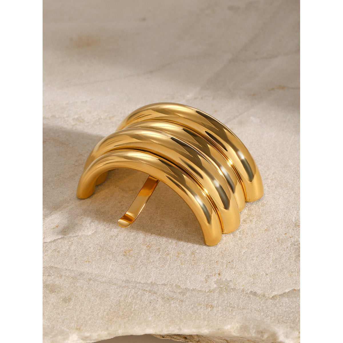 This waterproof, hypoallergenic accessory is a sculptural gold‑tone stainless‑steel hair claw featuring four chunky curved domes that create a sleek, modern look. The clip measures about 5.2 cm across and 3.0 cm high, with a substantial weight of approximately 21.1 g, giving a secure grip and premium feel.